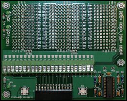 - 1.6" x 4" breadboard area with TH and SMD patterns. Pattern features a