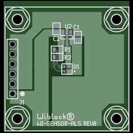 The wiblocks SENSOR-ALS provides ambient light sensing (ALS) that approximates human eye response under a variety of llighting conditions. The SENSOR-ALS has three selectable integration times and provide a direct 16-bit lux output via the I2C bus. Operates with a single 2.9V - 5V supply.
