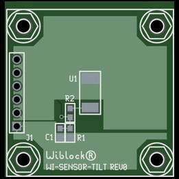 The wiblocks SENSOR-TOUCH is a single key touch sensor with toggle mode (touch-on/touch-off) plus programmable auto-off delay and external cancel. Operates with a single 1.8V - 5.5V supply (32uA at 1.8V).Tilt Sensor